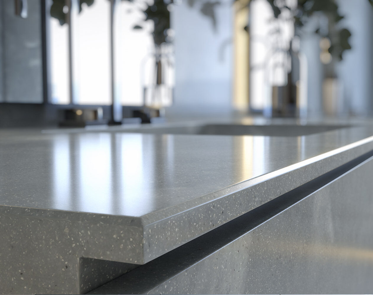 Allows for integrated sinks and backsplashes, eliminating seams where dirt and water collect.